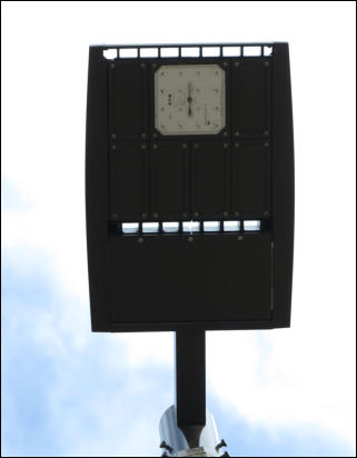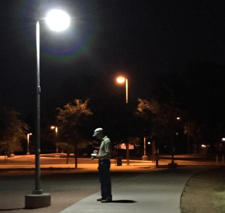 Above: The high pressure sodium (HPS) light bulbs are about 2200 Kelvin. Left: Colter Park with amber HPS lighting since the 1970’s - to save energy and they provided good sidewalk and playground lighting. The test fixture had harsh glare and bad blue LED rated at 4000 Kelvin.